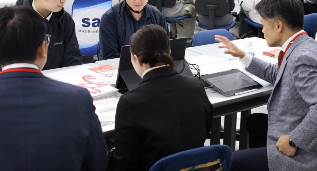 当日は、先輩社員が 実際に担当した図面をタブレットで見せながら、業務の流れや現場との連携について具体的に説明しました。
