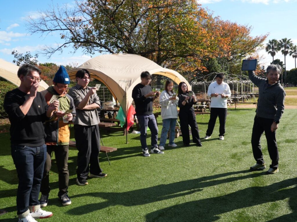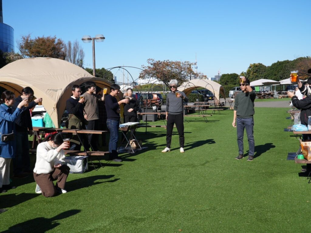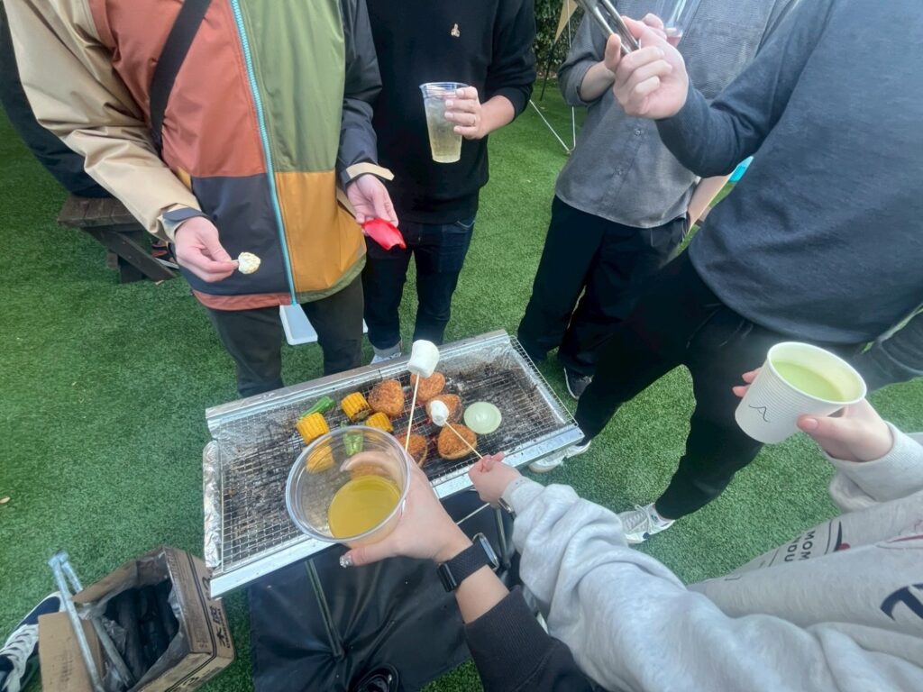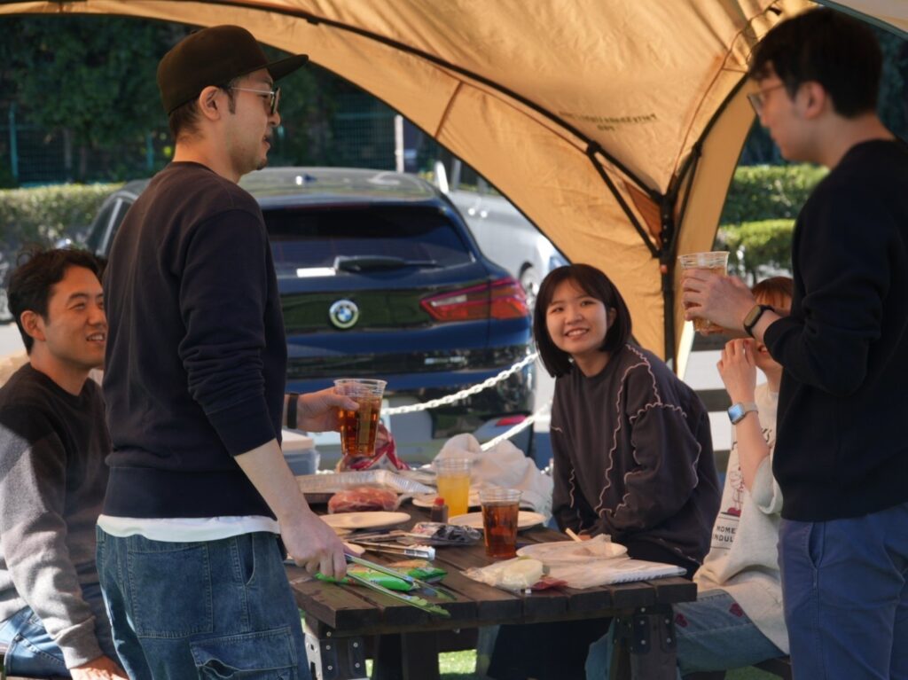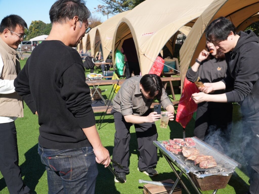 快晴でポカポカ陽気の中、予めランダムに振り分けたグループごとに、美味しいお肉達を焼いて食べながら、ビンゴ大会も行い大盛況でした。
